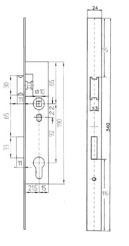 - Profile cylinder with double-action mechanism (i.e. the latch can also be opened by turning the key)