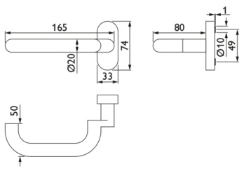 Drückerlochteil U-Form, gekröpft mit ovaler Rosette