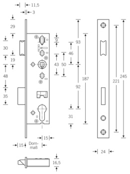 - Fallenausschluss 11,5 mm, Riegelausschluss 15 mm