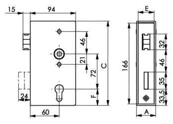 - Rechts und links verwendbar durch umdrehbaren Fallenkopf. Vorgerichtet für Profilzylinder
