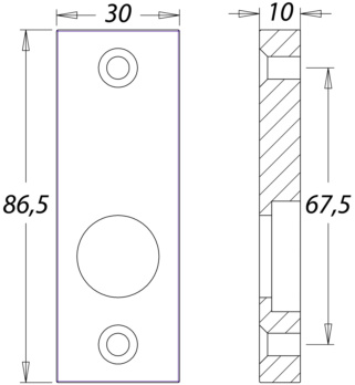 Mit sichtbarer Verschraubung, Bohrung asymmetrisch.