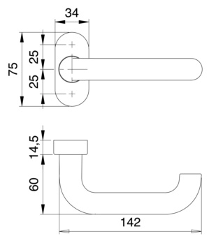 Festdrehbar mit Rückholmechanik auf Ovalrosette, unsichtbare Verschraubung. Bohrlochdurchmesser für M5.