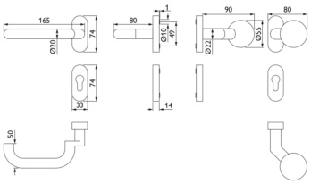 RR-Wechselgarnitur gekr.U-Form u. gekr.Knopf PZ mit Rosetten, TS80-88mm
