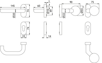 RR-KL4-Wechselgarnitur U-Form 20mm u. gekr.Knopf PZ mit Rosetten, TS 74-90mm