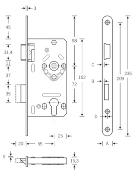 Zimmertür-Einsteckschloss Klasse 2 PZ
