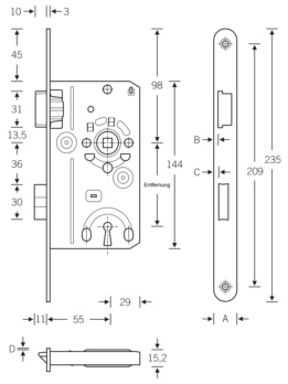 Zimmertür-Einsteckschloss Klasse 2 WC
